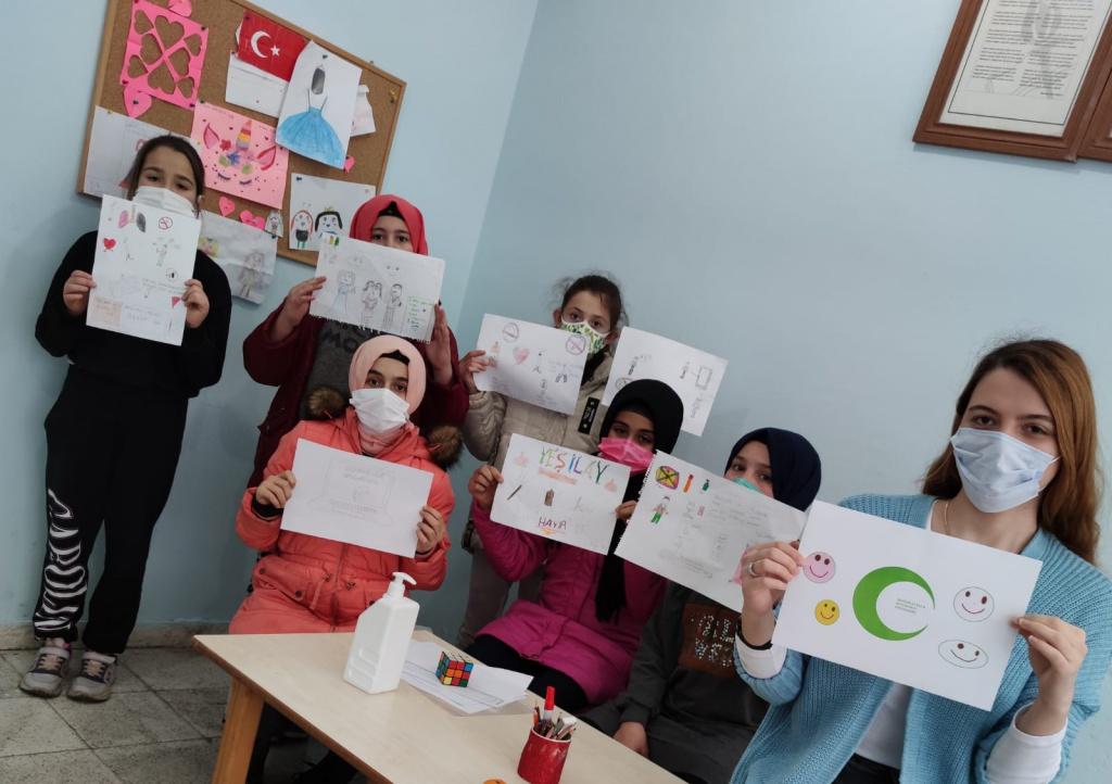 Minik ziyaretçilerimiz boş sayfaları renklendiriyor.