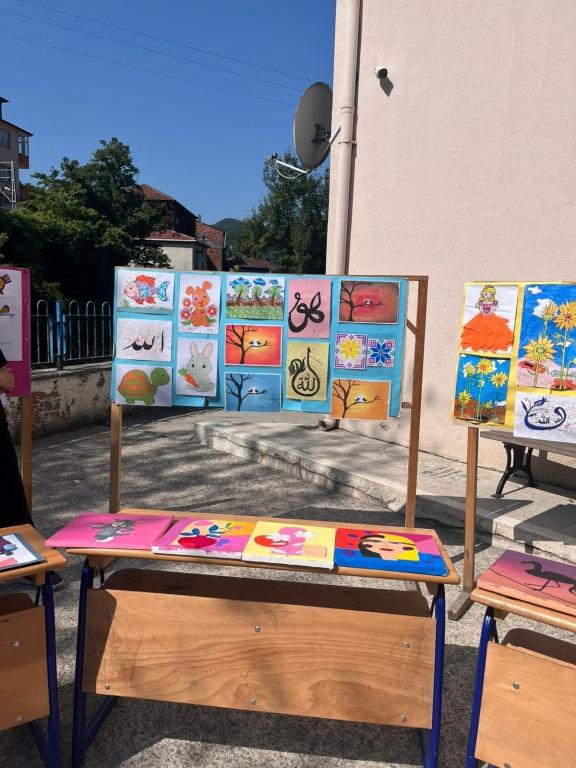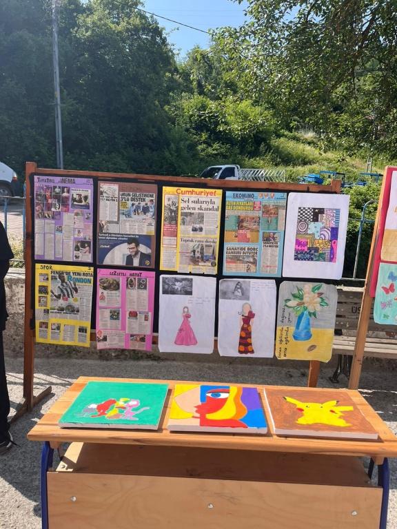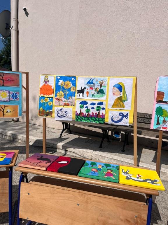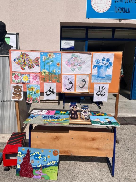 Okulumuzda 17 Haziran Salı günü Görsel Sanatlar dersi öğretmenimiz Melda GÜRBÜZ öncülüğünde "Resim Sergisi ve Kermes" düzenlenmiştir.Yapılan sergide öğrencilerimizin 2024-2025 eğitim öğretim yılı boyunca yaptıkları çalışmalar sergilenmiştir.Kermesimiz gıda içerikli olup davetlilerimiz eşliğinde gerçekleştirilmiştir.Başta Okul Müdürümüz Aysel KURT ve Görsel Sanatlar öğretmenimiz olmak üzere emeği geçen tüm öğretmenlerimiz,velilerimiz ve öğrencilerimize teşekkür ederiz.